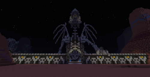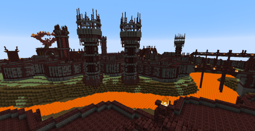 This village is located in the hellish mountains south of Chaos Maze. Brave heroes from the Kingdom founded a settlement here where players can rent a house or trade. There is access to a gate to the Nether that leads directly to a pigman village where quests can be completed. There are also two entrances to the hellish mines where players can mine Netherrack. Since traveling on foot is inconvenient and time-consuming, a teleportation platform (teleportpad) has been built here, allowing players to teleport back to the safe lands of the Kingdom.